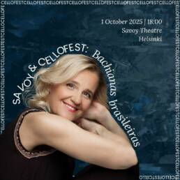 In the second half of the concert, soprano Piia Komsi joins the Cellofest Cello Ensemble to perform Noita and Aurinko isäni, a work by Finnish composer Aija Puurtinen. Sung in Sámi language, this powerful piece bridges ancient northern tradition and contemporary expression.